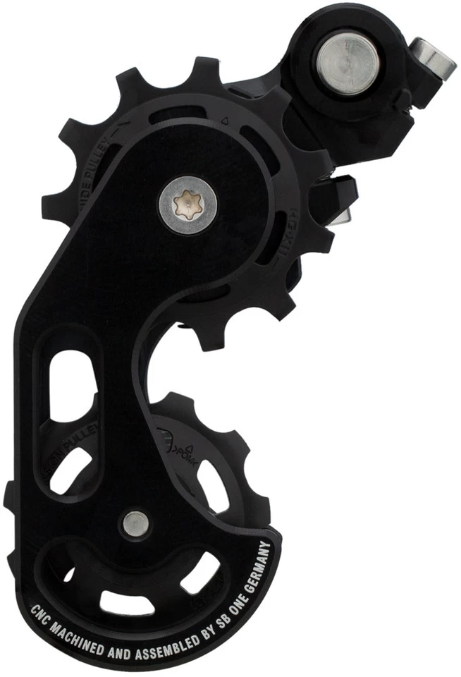 Technische Daten:Einsatzbereich:DownhillMaterial:Aluminium (7075)Dämpfung/Kupplung:stufenlos einstellbarRitzelgrößen:12 – 17 ZähneEinstellbereich Kettenlinie:0 – 18 mm, stufenlosKompatibilität:HG-Naben, 9/10/11-fach KettenFeatures:brachiale Spannkraftstufenlos einstellbare Umschlingung der KetteArretierung des Käfigs erleichtert die Demontage des HinterradsAusrichtung zum Ritzel stufenlos einstellbar bis 18 mmgekapseltes Spannsystem (Drehfeder kann nicht verschmutzen und dadurch nicht stagnieren)einfache Montage am Schaltaugefür handelsübliche HG-Naben und alle 9/10/11-fach Kettenkompatibel z.B. mit Reverse Singlespeed-Kit oder Gusset Doublesix RitzelHerstellernummer:schwarz:SBO-G3CDH-000Lieferumfang:1 x Kettenspanner SB ONE DH G3Cohne Spacerohne Ritzel