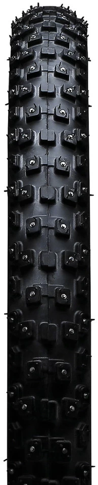 Praktischer Winterreifen mit großvolumigem Mantel für besseren Lauf im Schnee. Seine freiliegenden, viereckigen Profilblöcke sorgen für mehr Traktion und die 252 Spikes für mehr Haltbarkeit.