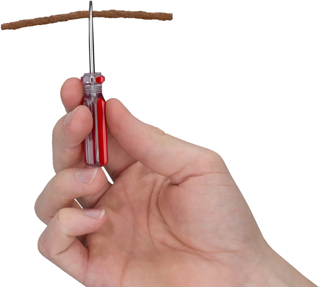 6. Tubeless-Flicken festhalten und das Einführwerkzeug wieder herausziehen.